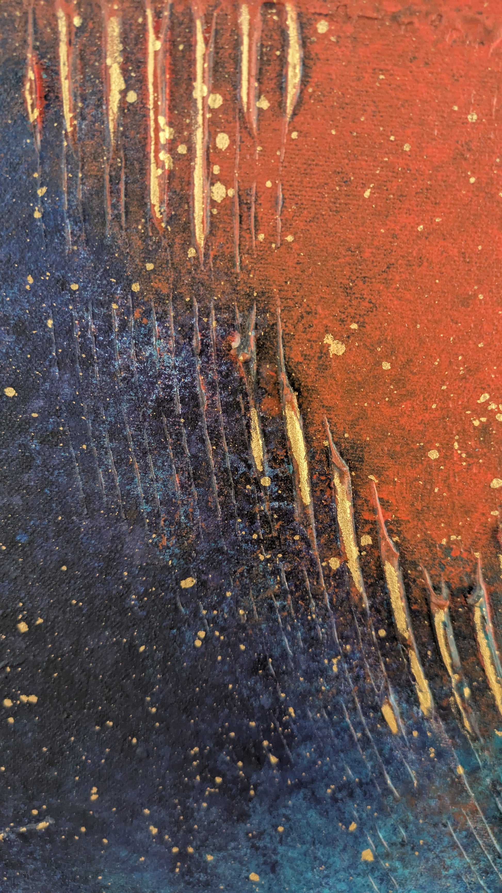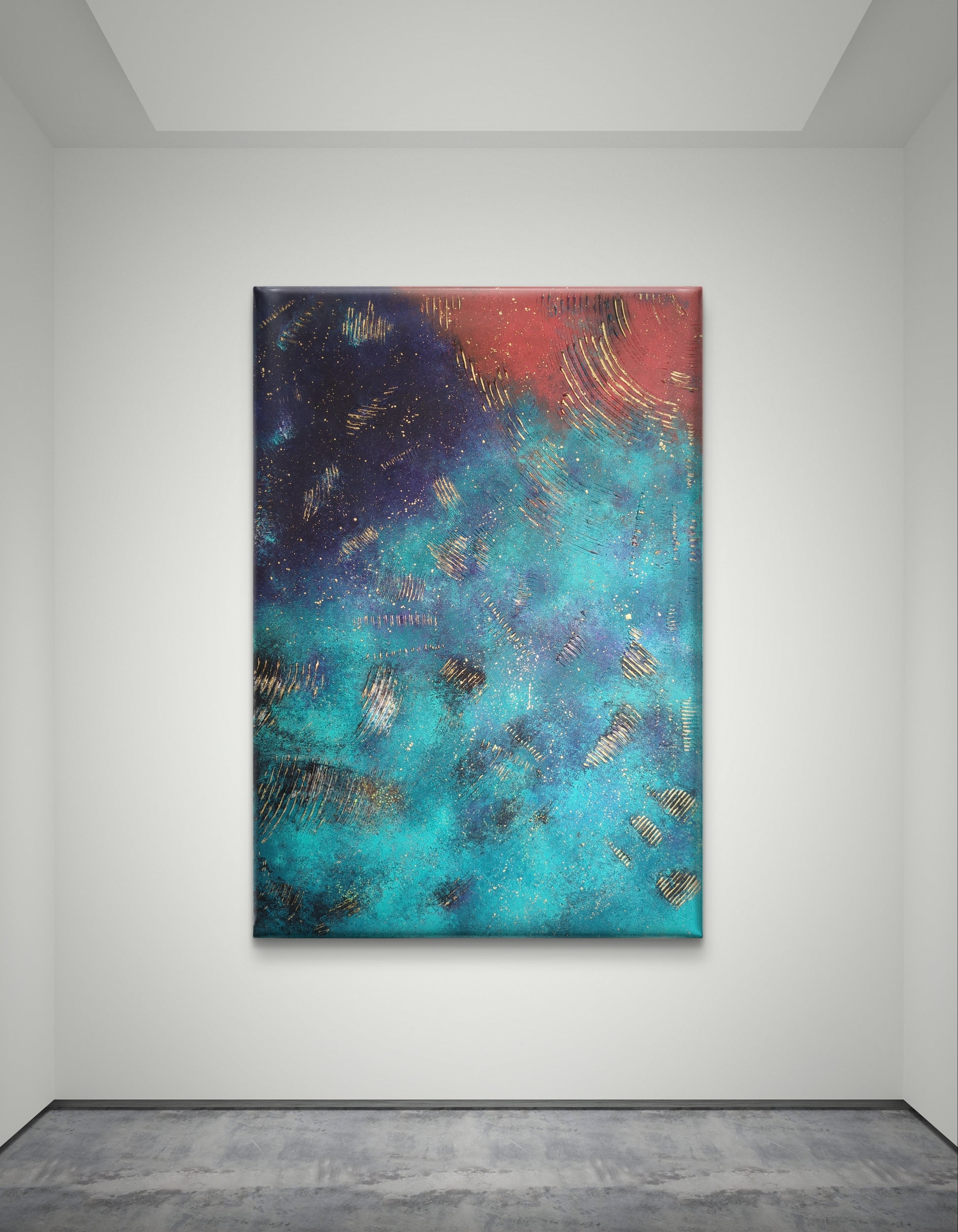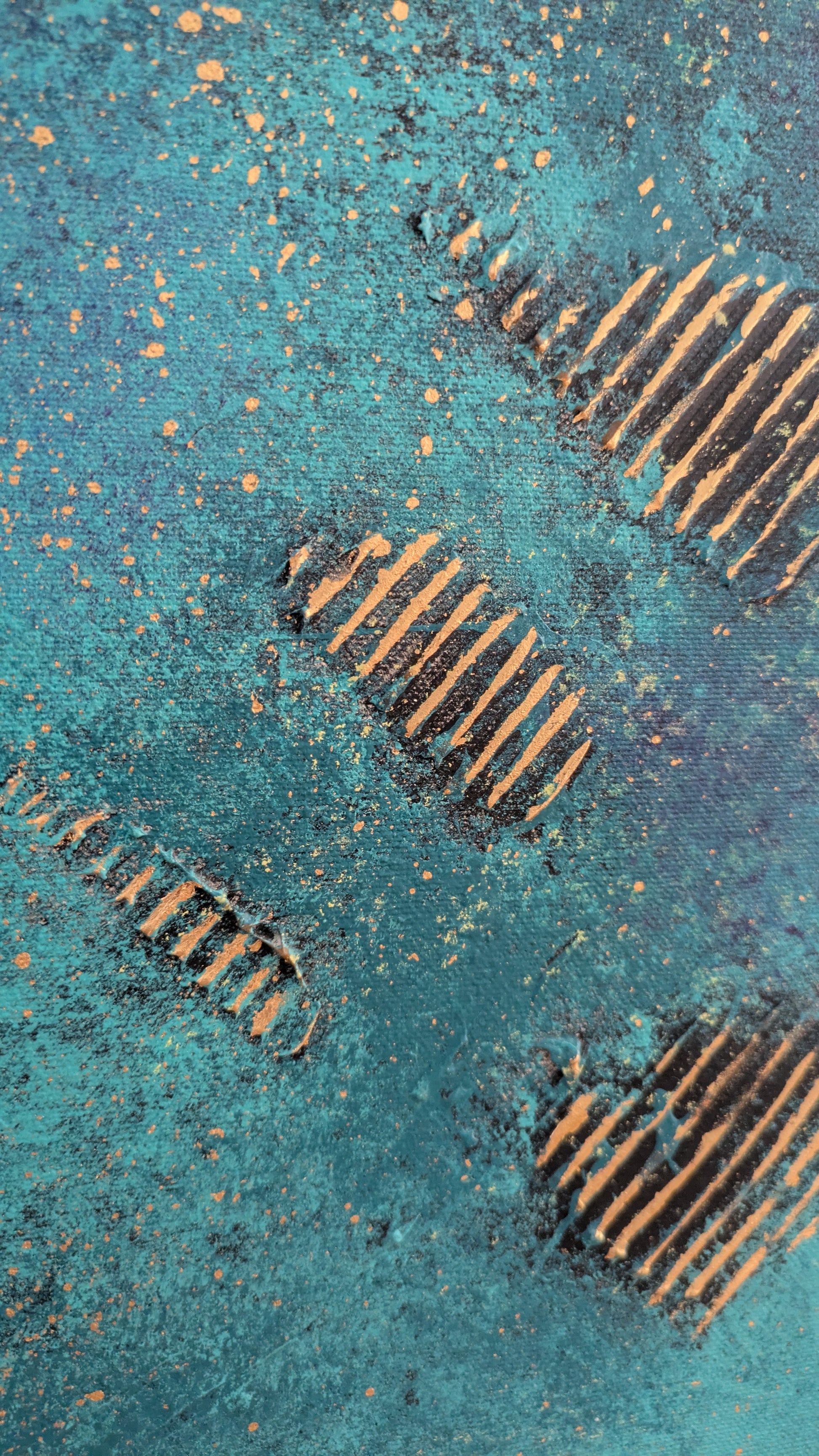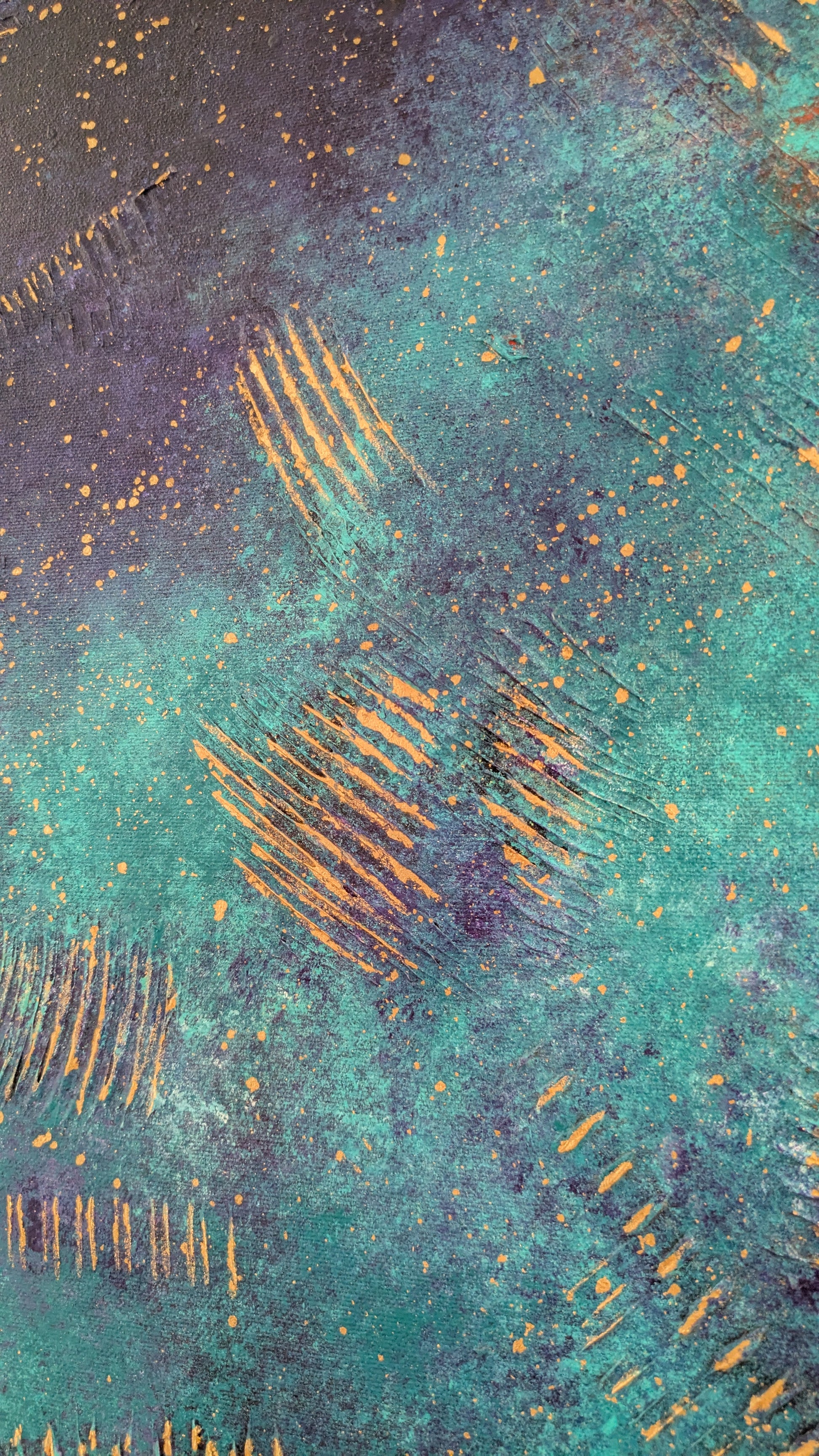 Textured Abstract Painting with acrylics and mixed media. This painting is original and unique hand painted. It was exhibited at the prestigious Satura Art Gallery in Genoa, Italy, in September 2024. Measuring 70 L x 100 H cm - Depth 21MM.
