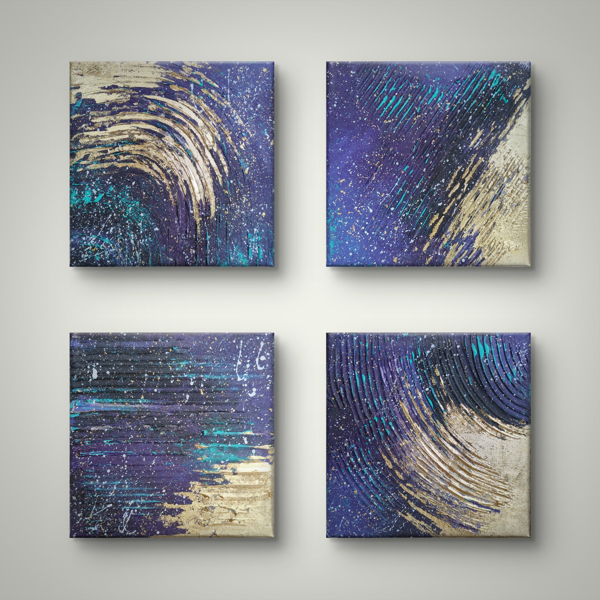 Textured Abstract Painting with acrylics and mixed media. These paintings are original and unique hand painted set of 4 canvases, each measuring 20x20cm - Depth 21MM.