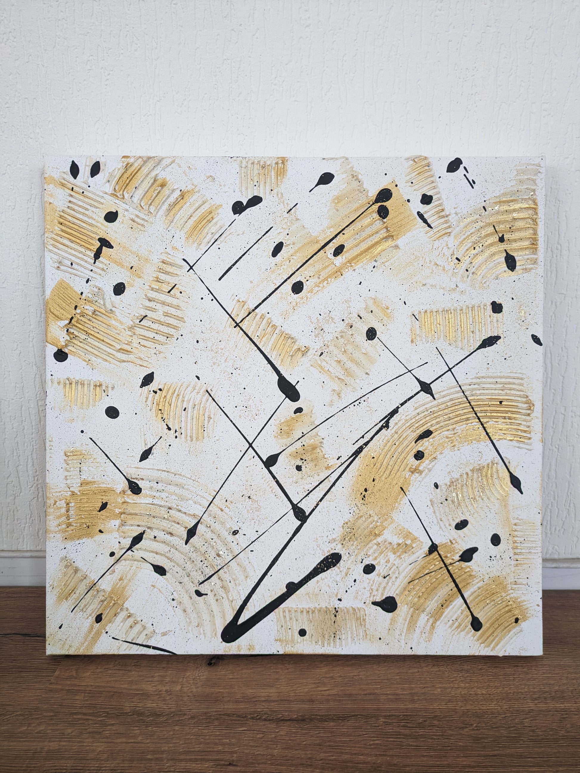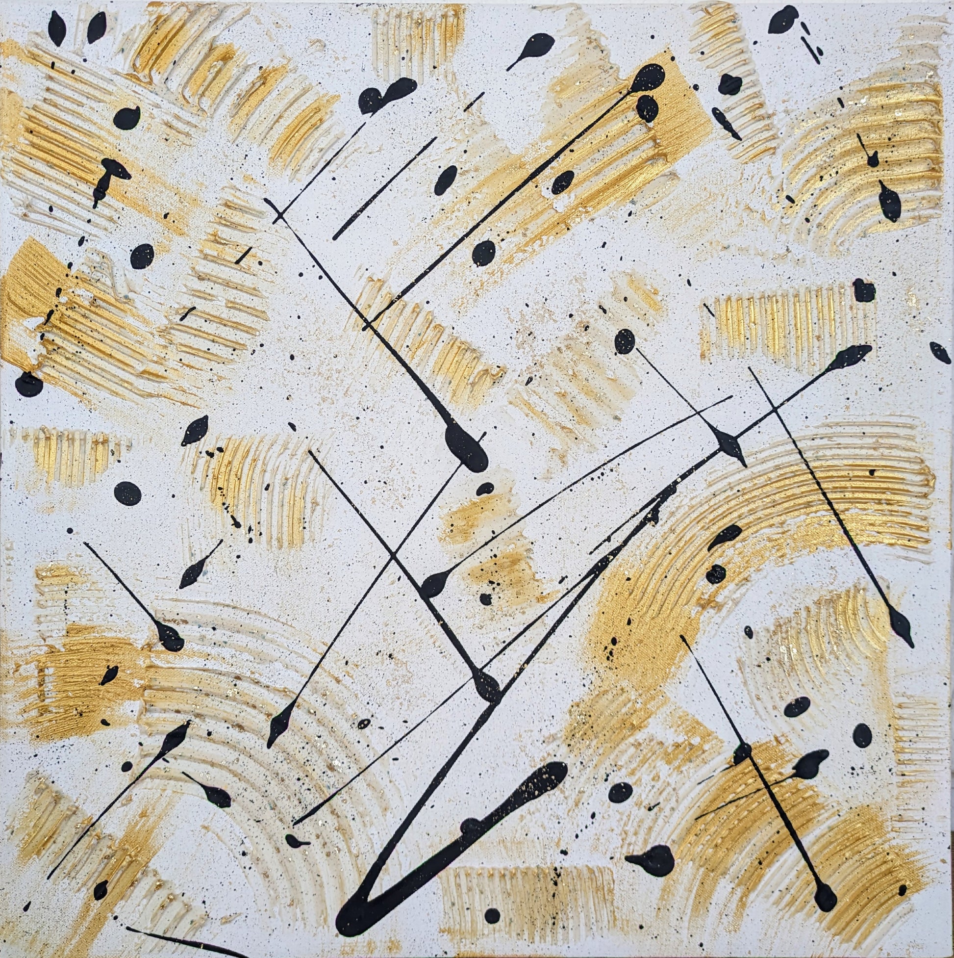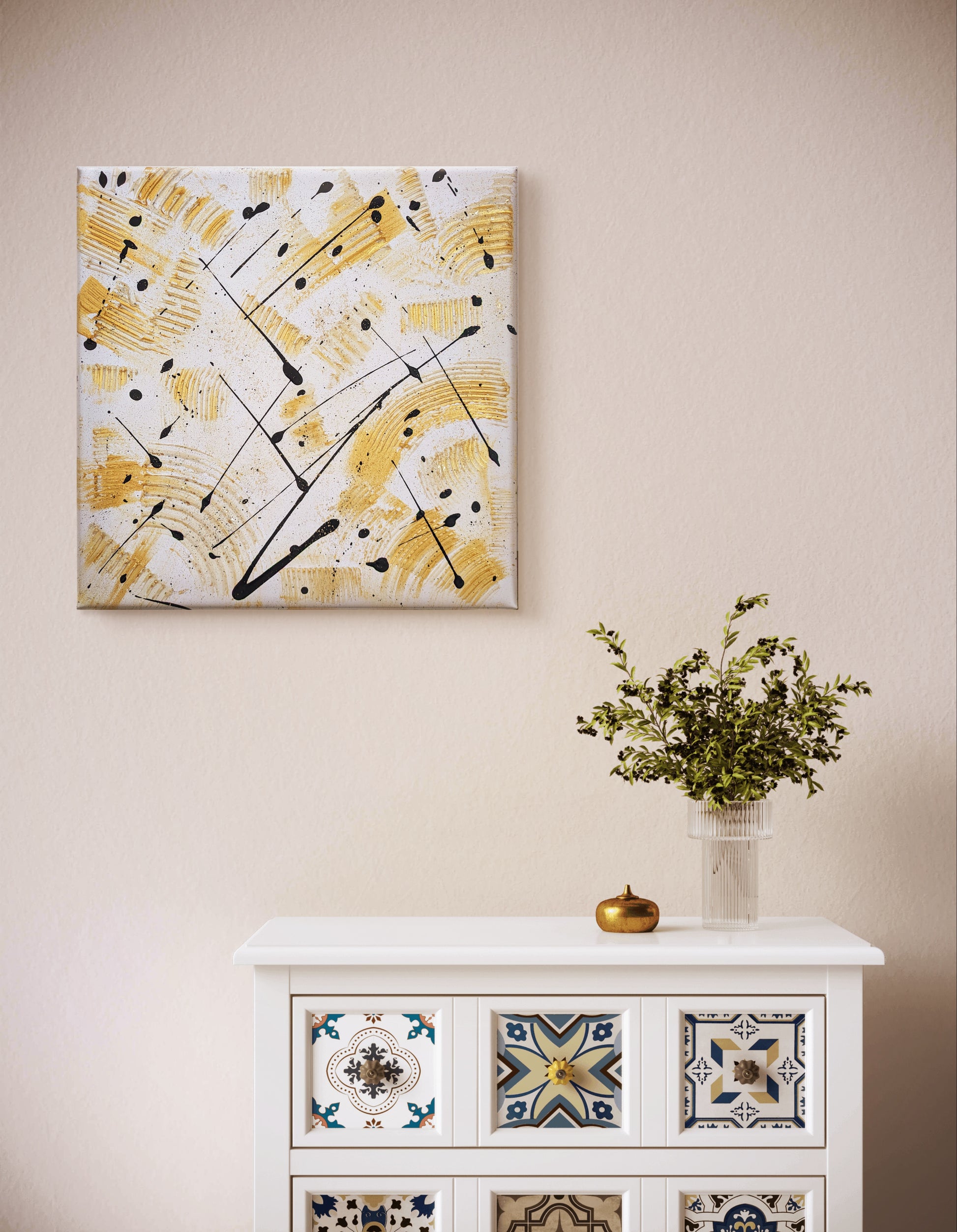 Textured vibrant colors abstract painting with acrylics and mixed media. Perfect for home decor and modern Spaces. These paintings are original and unique hand painted. This Duo are the 5th the 6th pieces in a six-painting collection titled "Gold Sabbath", each measuring 50 L x 50 H cm - 3D canvas Depth 37MM .
