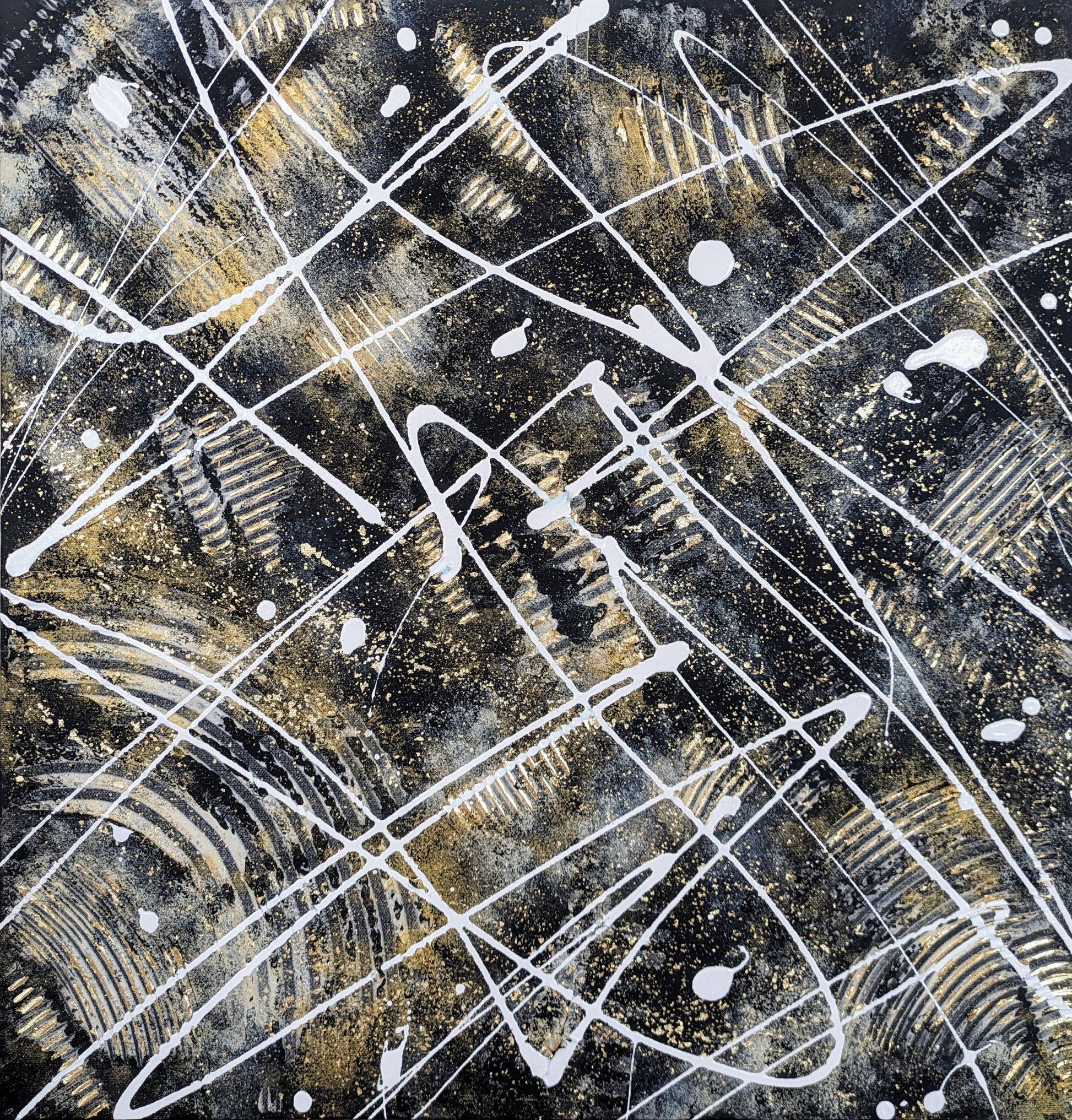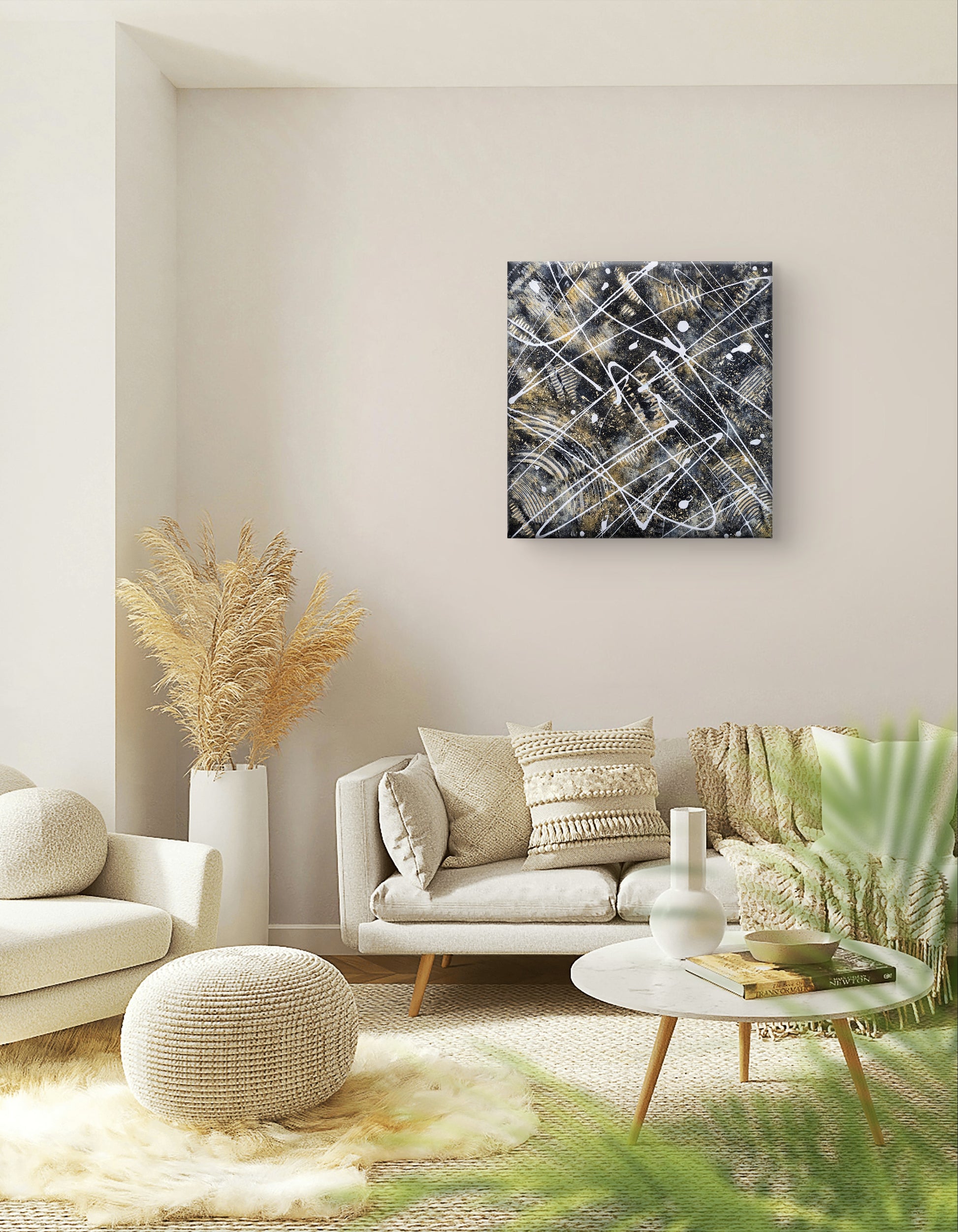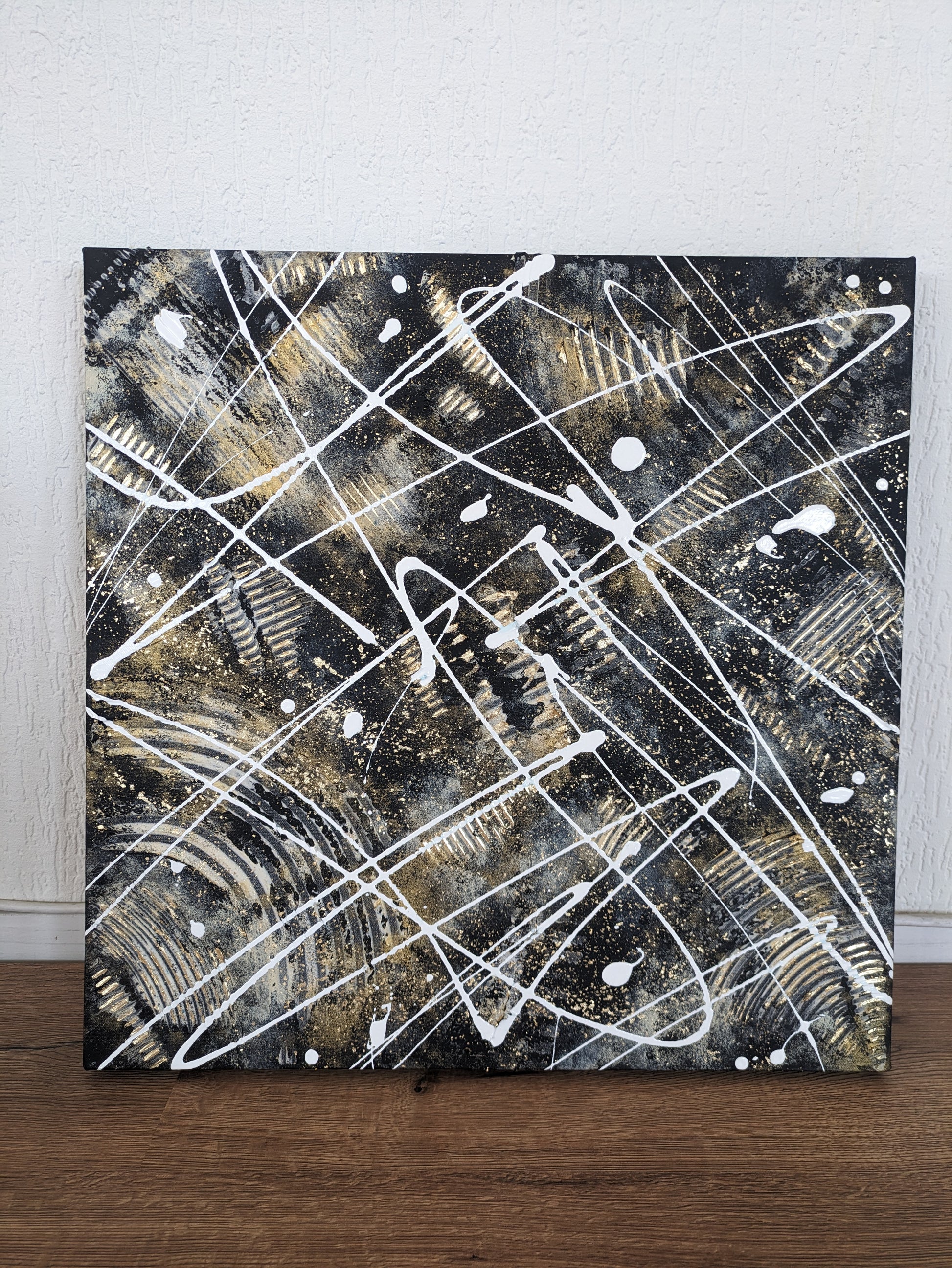 Textured vibrant colors abstract painting with acrylics and mixed media. Perfect for home decor and modern Spaces. These paintings are original and unique hand painted. This Duo are the 5th the 6th pieces in a six-painting collection titled "Gold Sabbath", each measuring 50 L x 50 H cm - 3D canvas Depth 37MM .