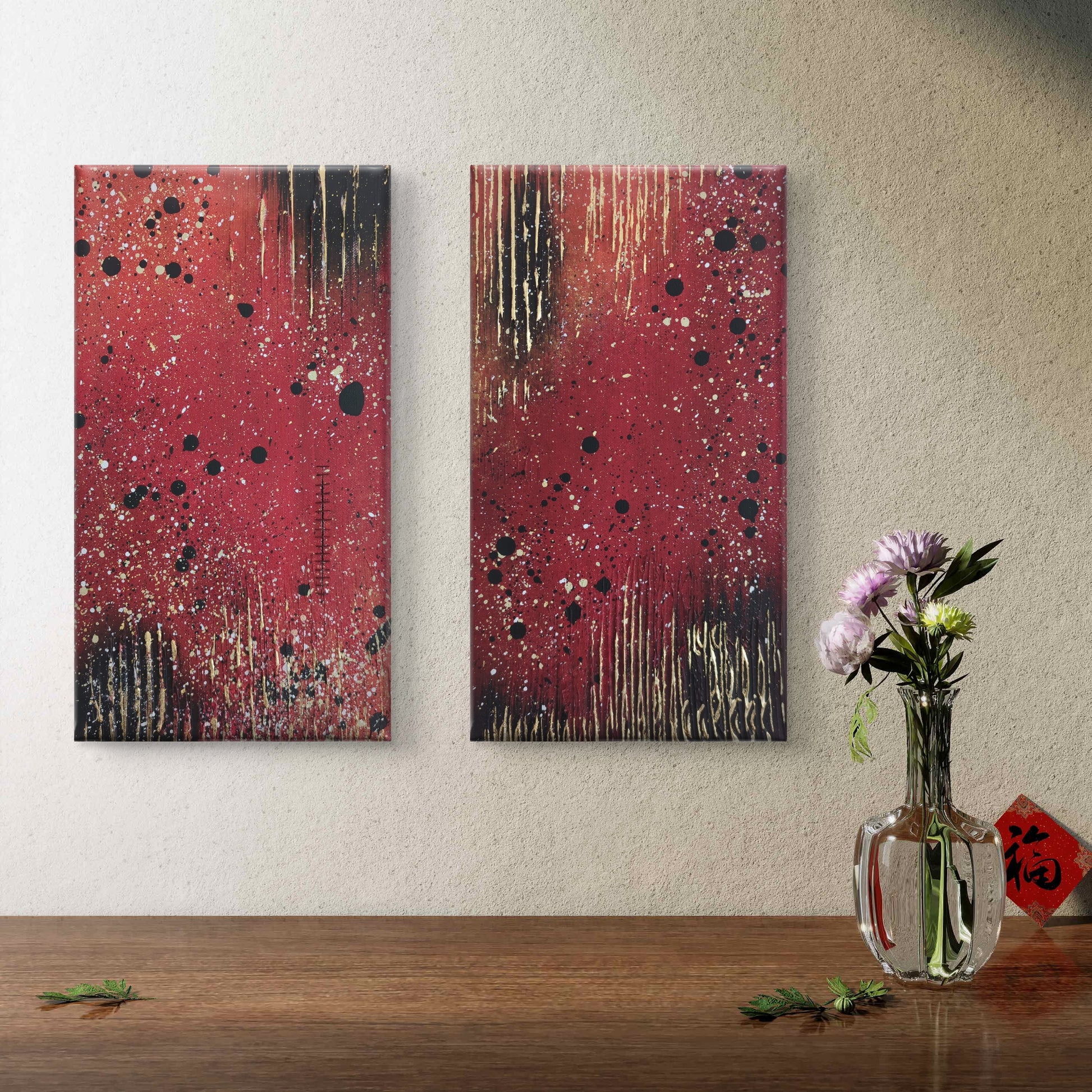 Textured Abstract Painting with acrylics and mixed media. These paintings are original and unique hand painted set of 2 canvases, each measuring 20 L x 40 H cm - 3D Canvas Depth 41MM.